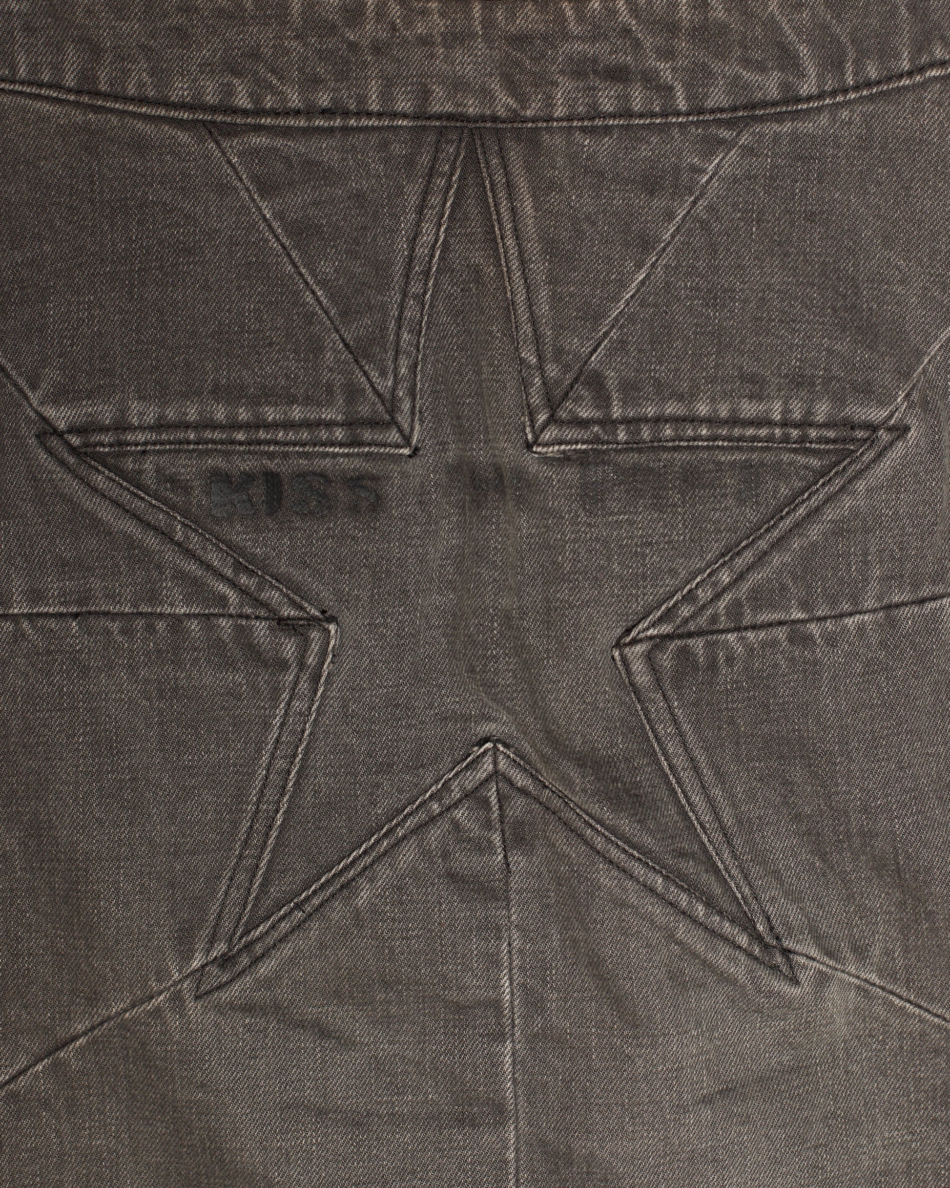 20471120 skirt from the brand's Autumn-Winter 2000/01 'Recycouture' collection. Features a star pattern on the rear of the skirt, along with a faded 'KISS THE PAST' print in the middle.