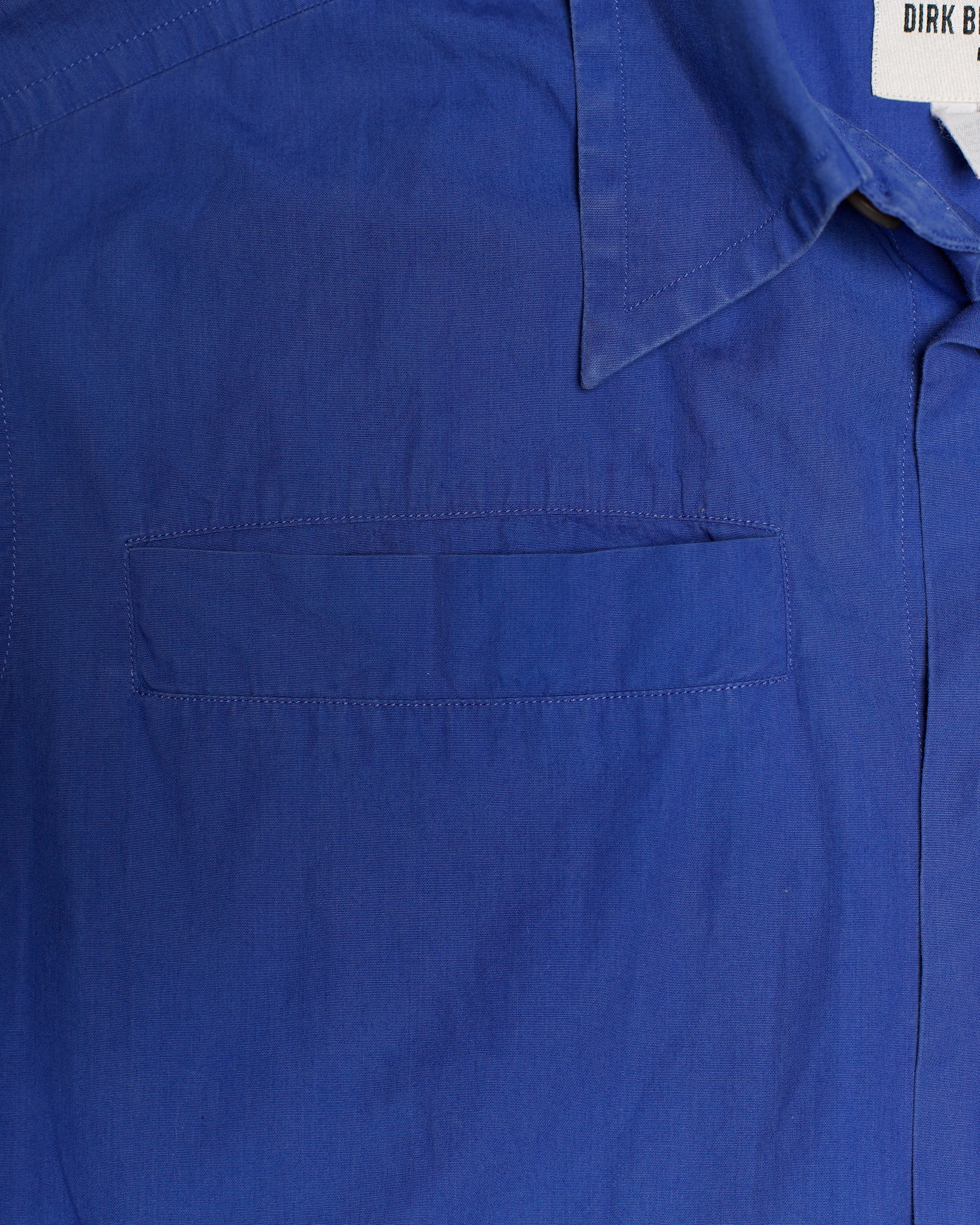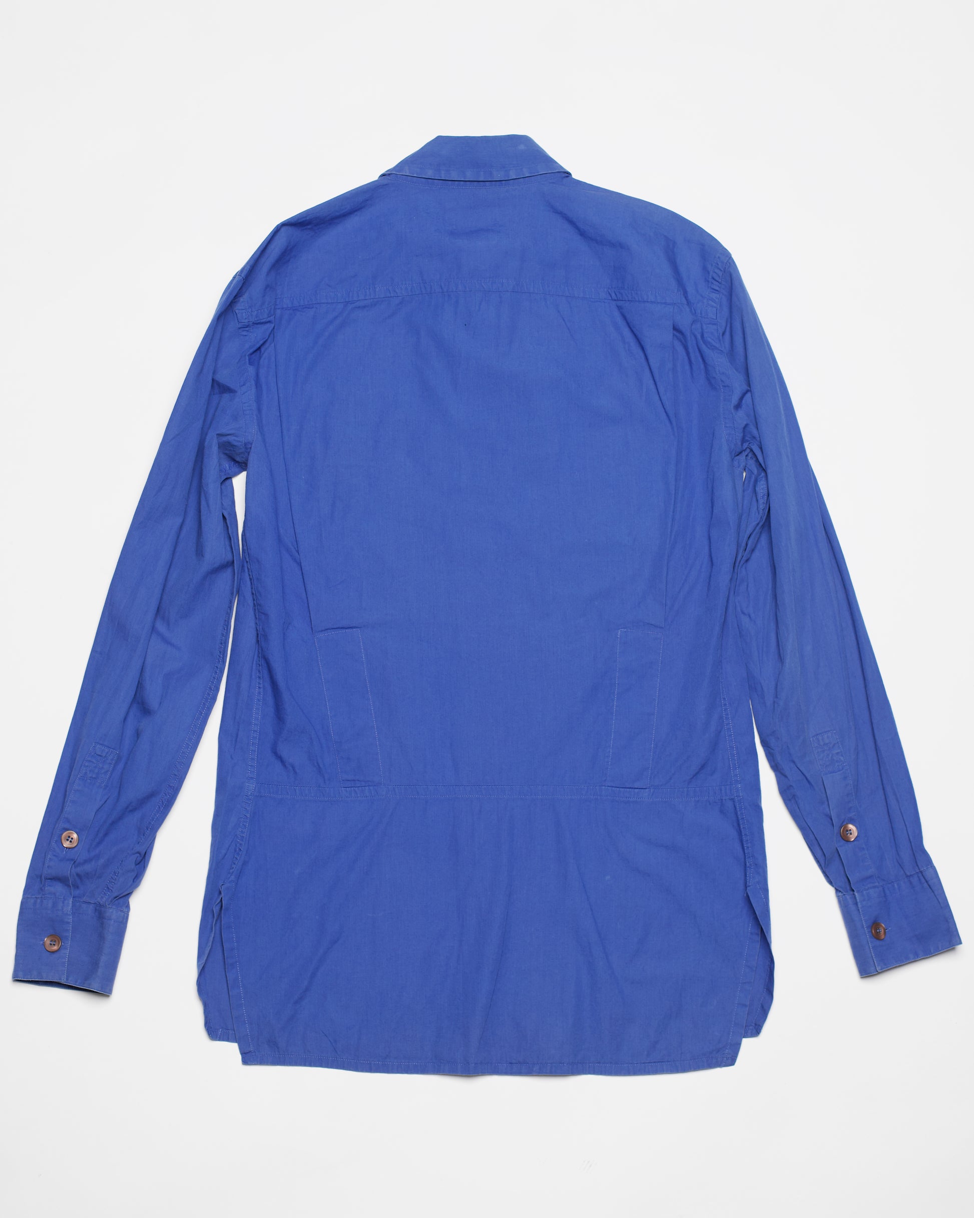 Early 1990s-era button down shirt from Dirk Bikkembergs mainline collection. Crafted in a stunning, azure blue, this shirt features wide-berth, signature pockets on each breast and dual pleats sewn into patch strips on the rear.