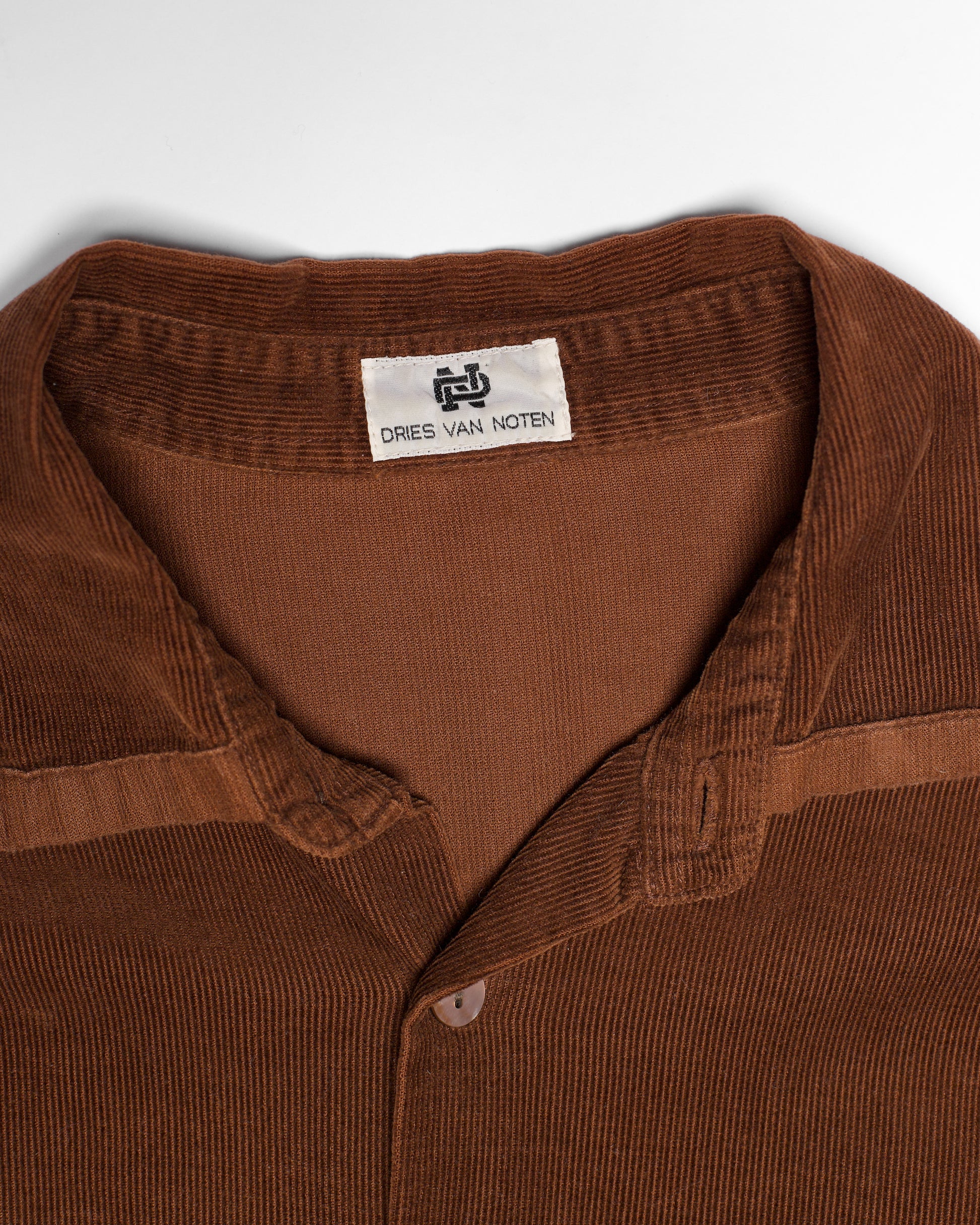 Mid 1990s-era Dries Van Noten corduroy shirt with contrast piping on the collar. Features the vintage tag DVN used from 1993, when the label was started, until the early 2000s.
