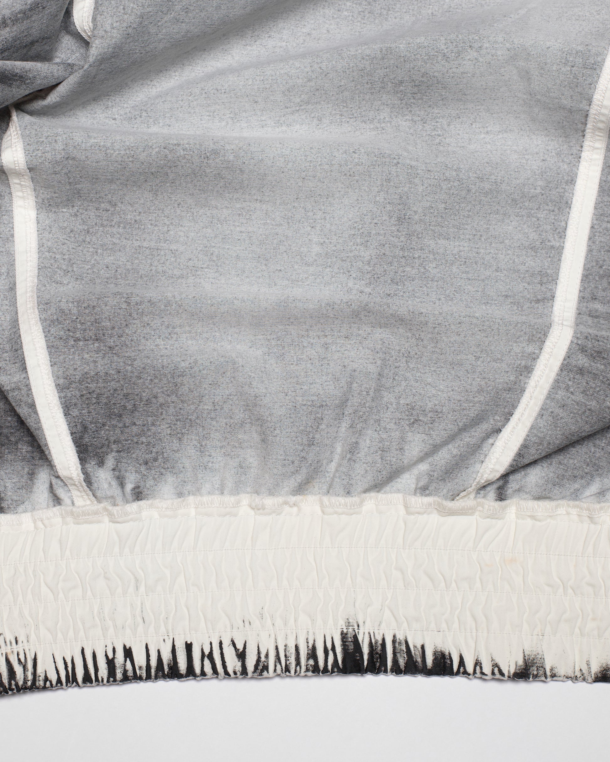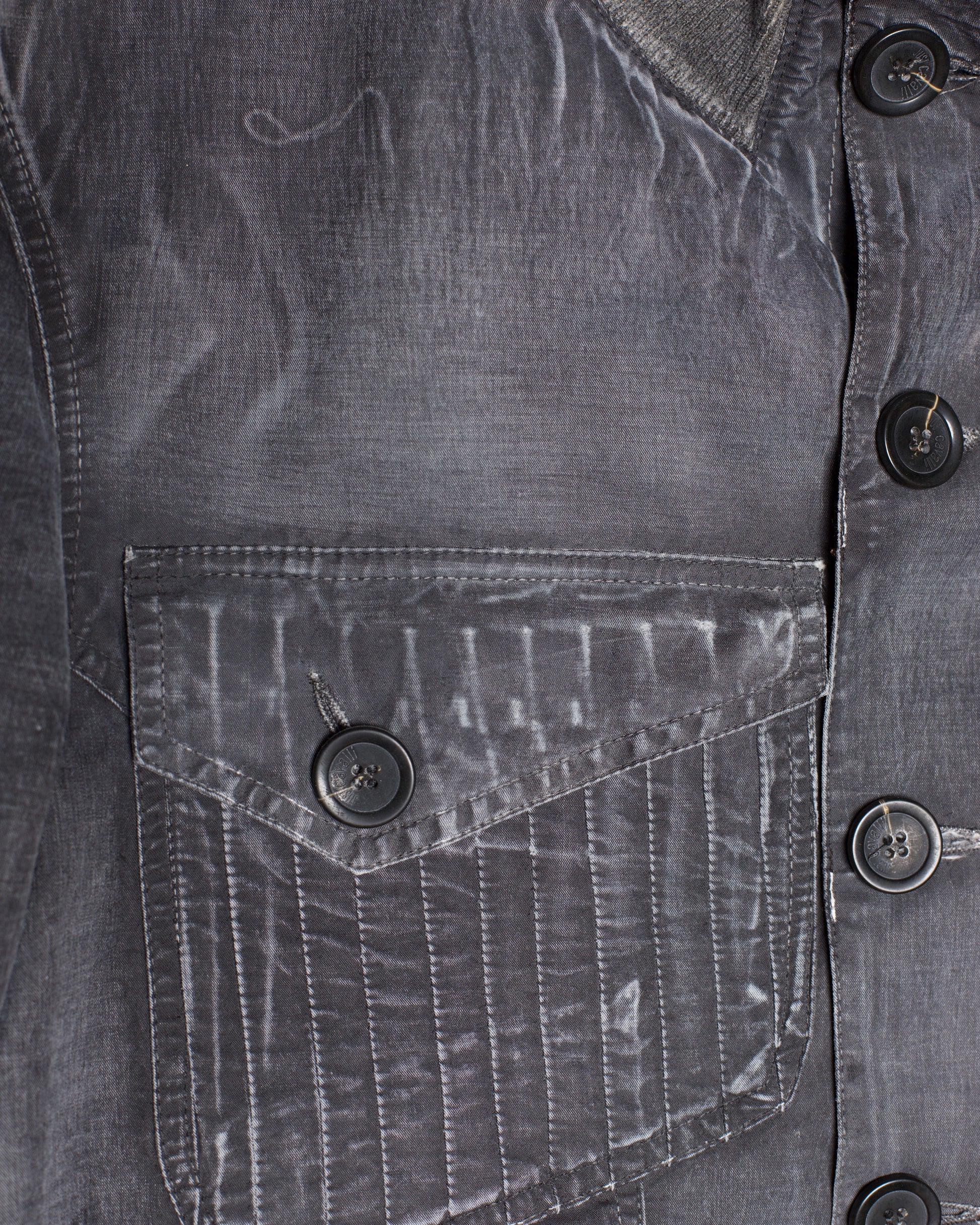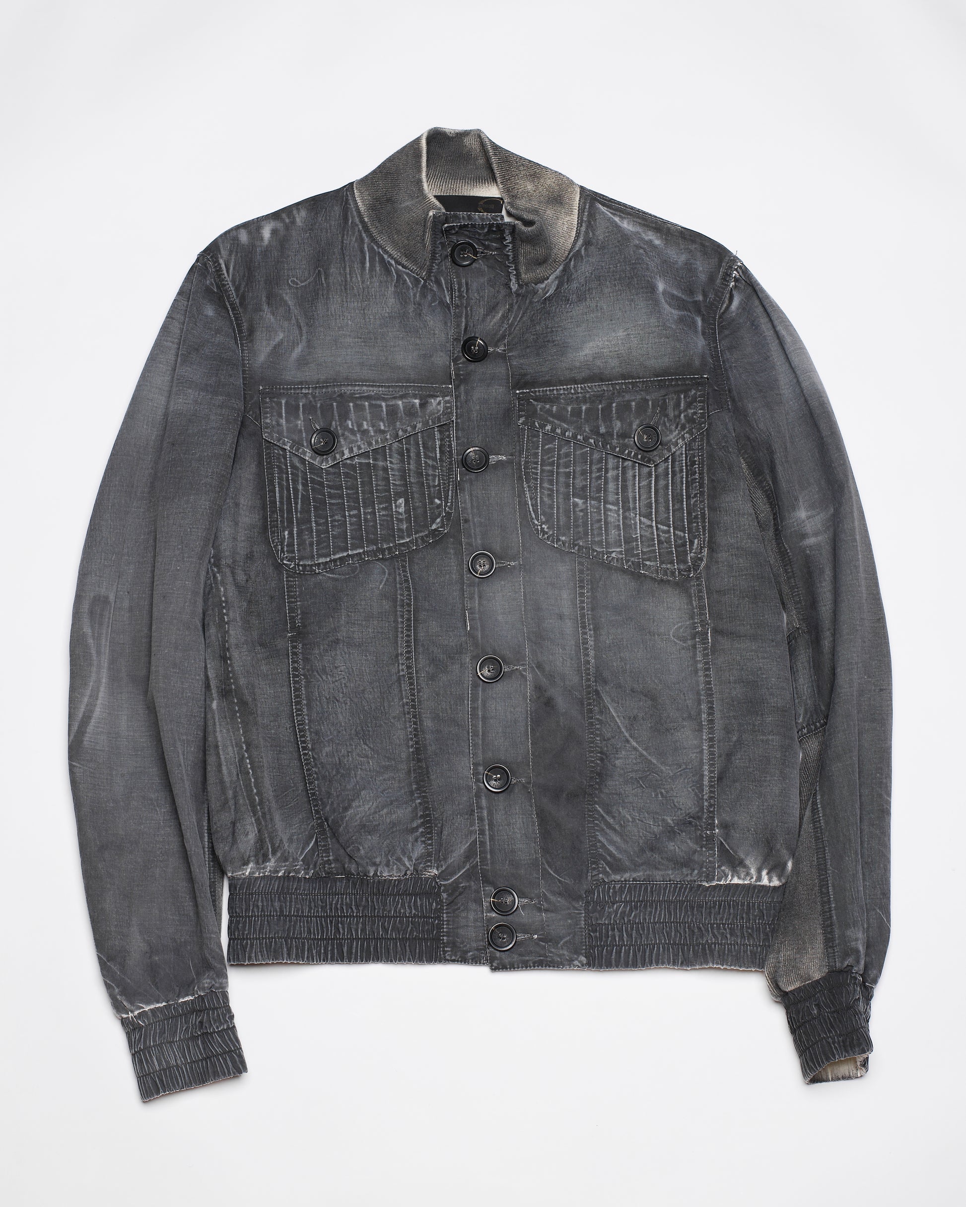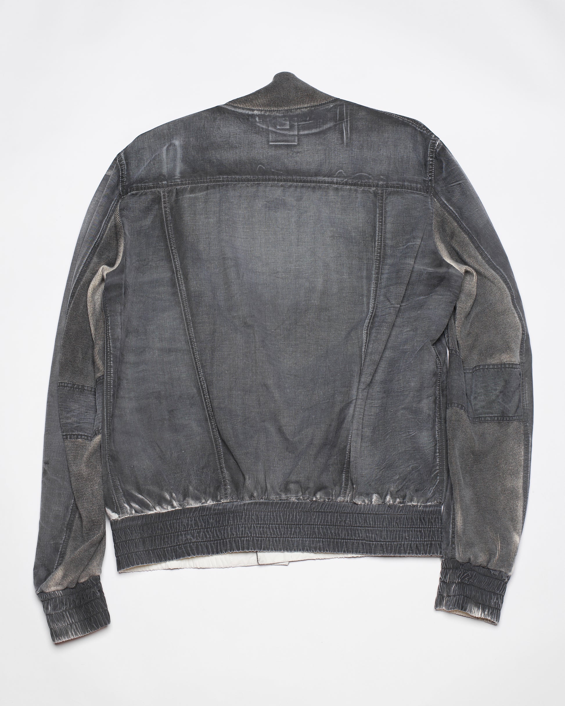 A striking and unconventional piece from Just Cavalli, this bomber jacket features extreme over-dyeing that transforms a classic silhouette into something more experimental and visually compelling. The intense dye process gives the fabric a heavily faded, washed-out appearance that borders on the surreal, evoking the look of an x-ray or photographic negative.