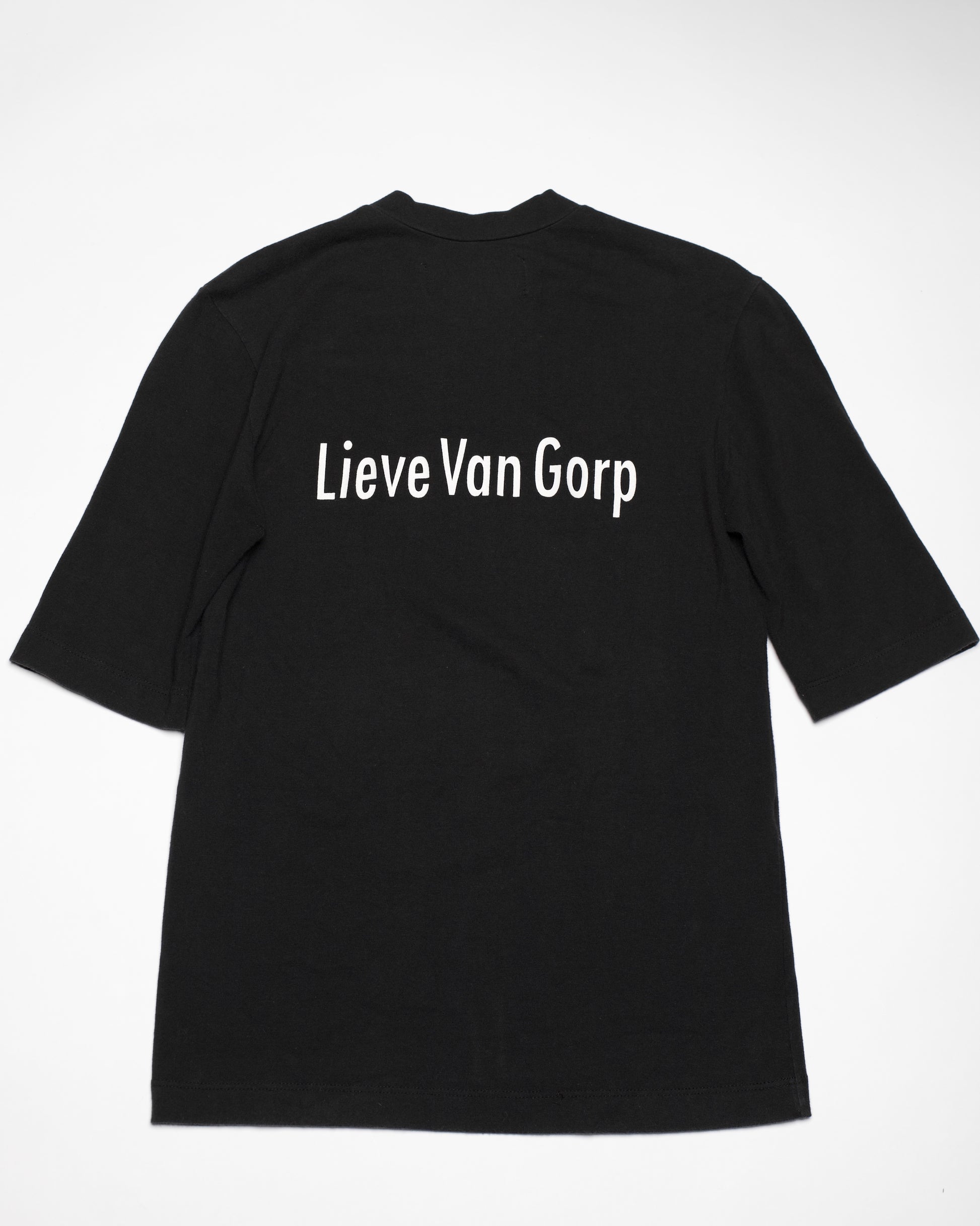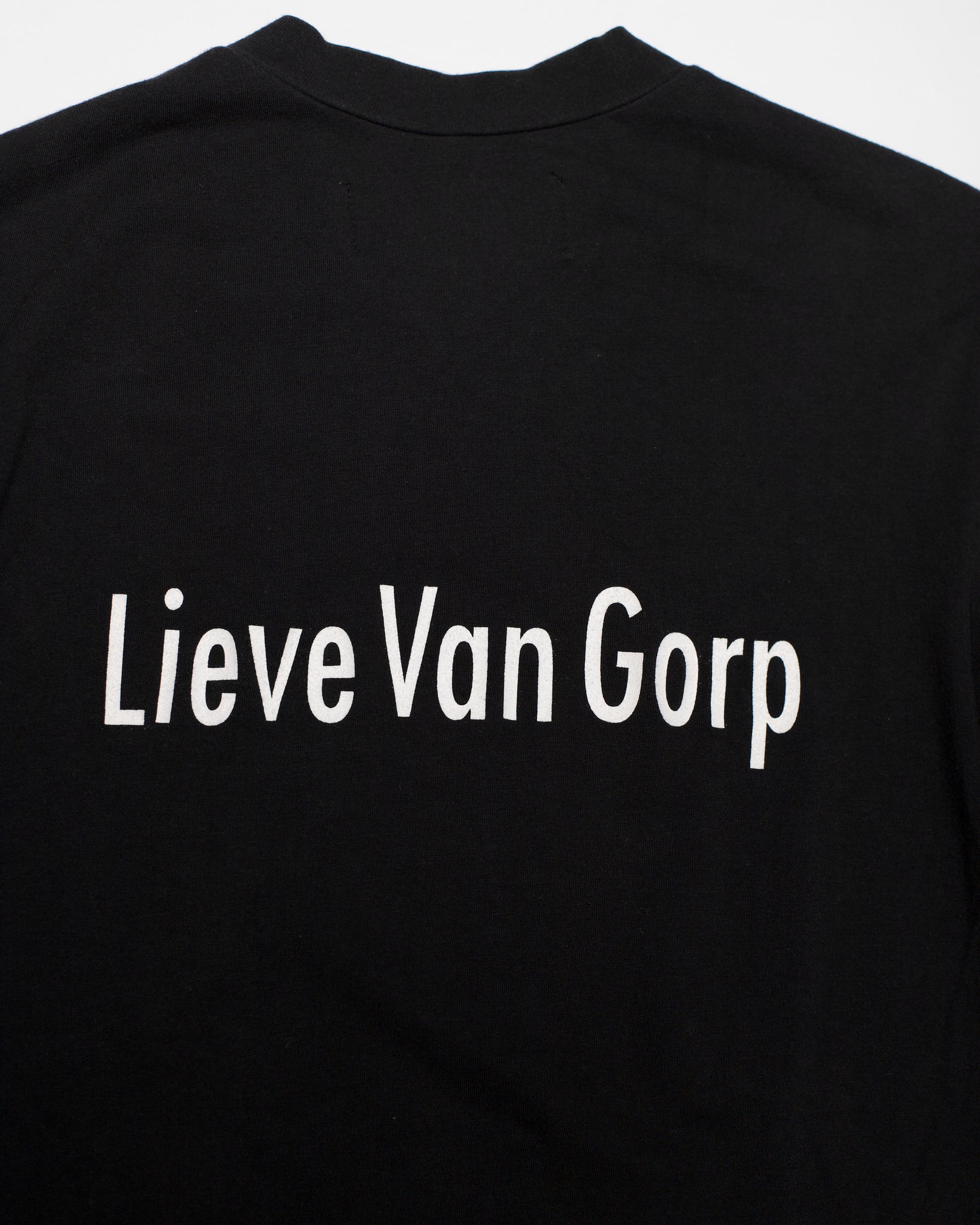 A graduate of the Antwerp Academy, Van Gorp's work often explored themes of trauma, identity, and gender through deconstructed tailoring, bold graphics, and punk and rock n' roll aesthetics. Though lesser-known than her Antwerp Six peers, her early collections have become cult favorites in archival fashion circles.