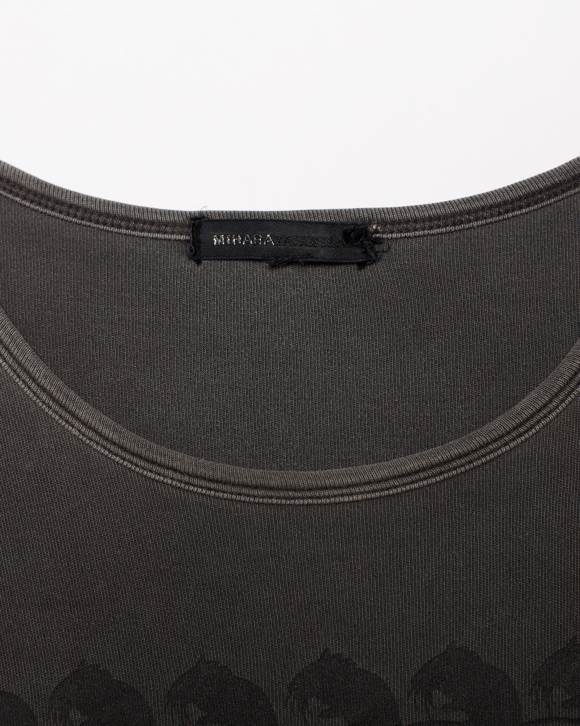The piece combines everyday wearability with a distinct graphic punch, embodying the designer’s balance of street-inflected attitude and Japanese precision. As with much of Mihara’s early output, it stands as a rare example of his pre-mainstream experimentation in form and imagery.