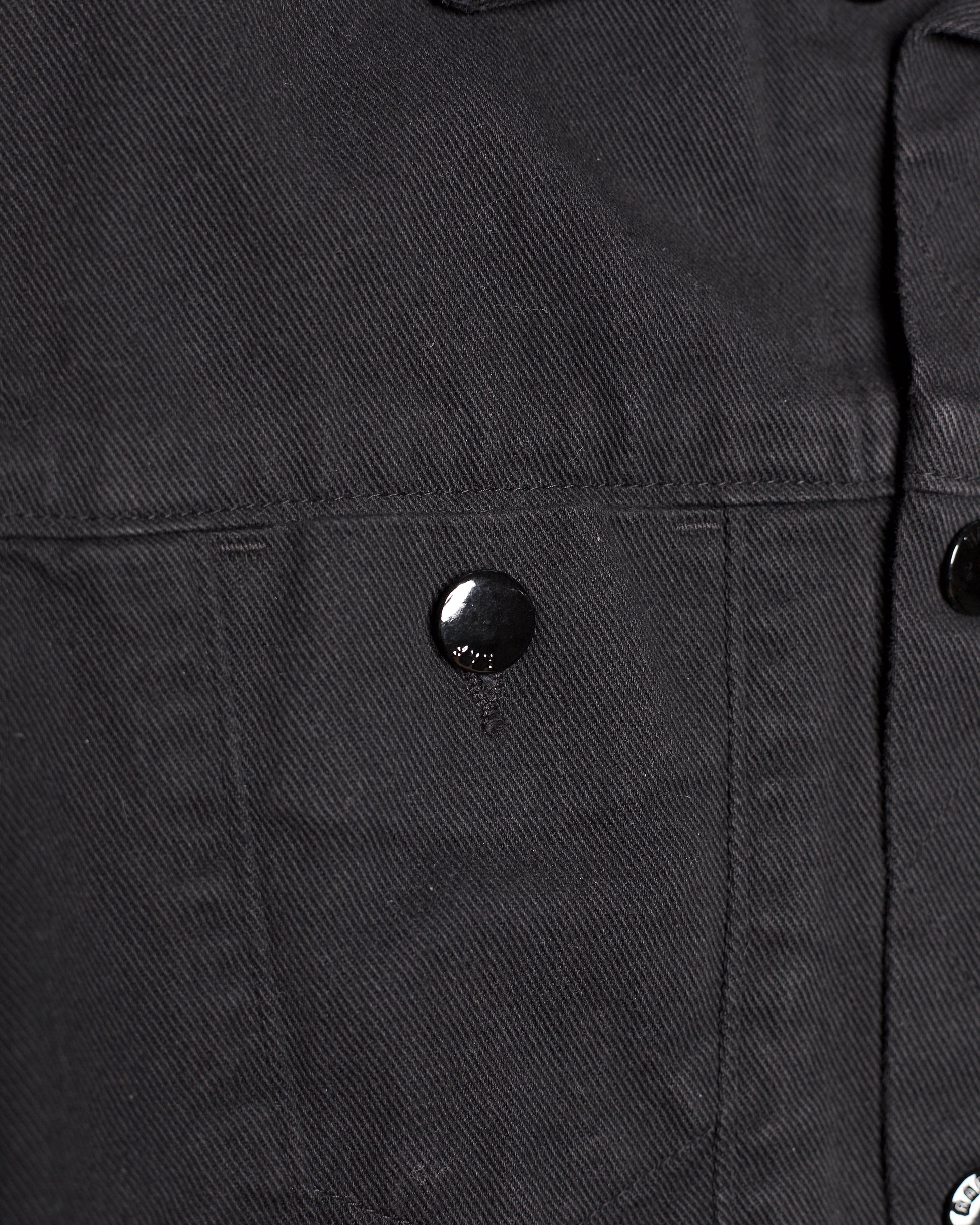 Black denim vest from Raf Simons' long-running diffusion line, RAF by Raf Simons. Constructed from sturdy denim, the vest features a classic workwear silhouette with custom hardware enamel buttons.