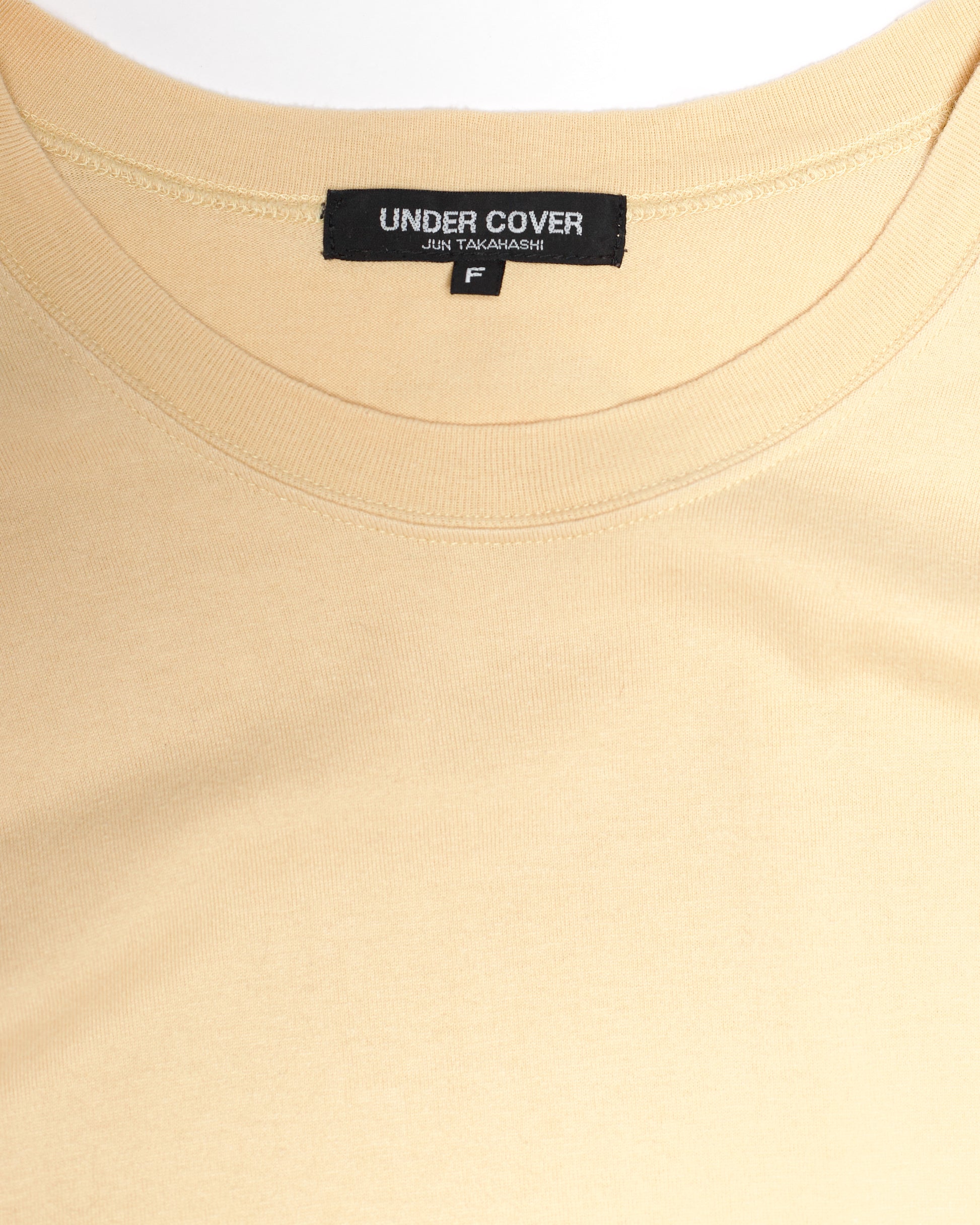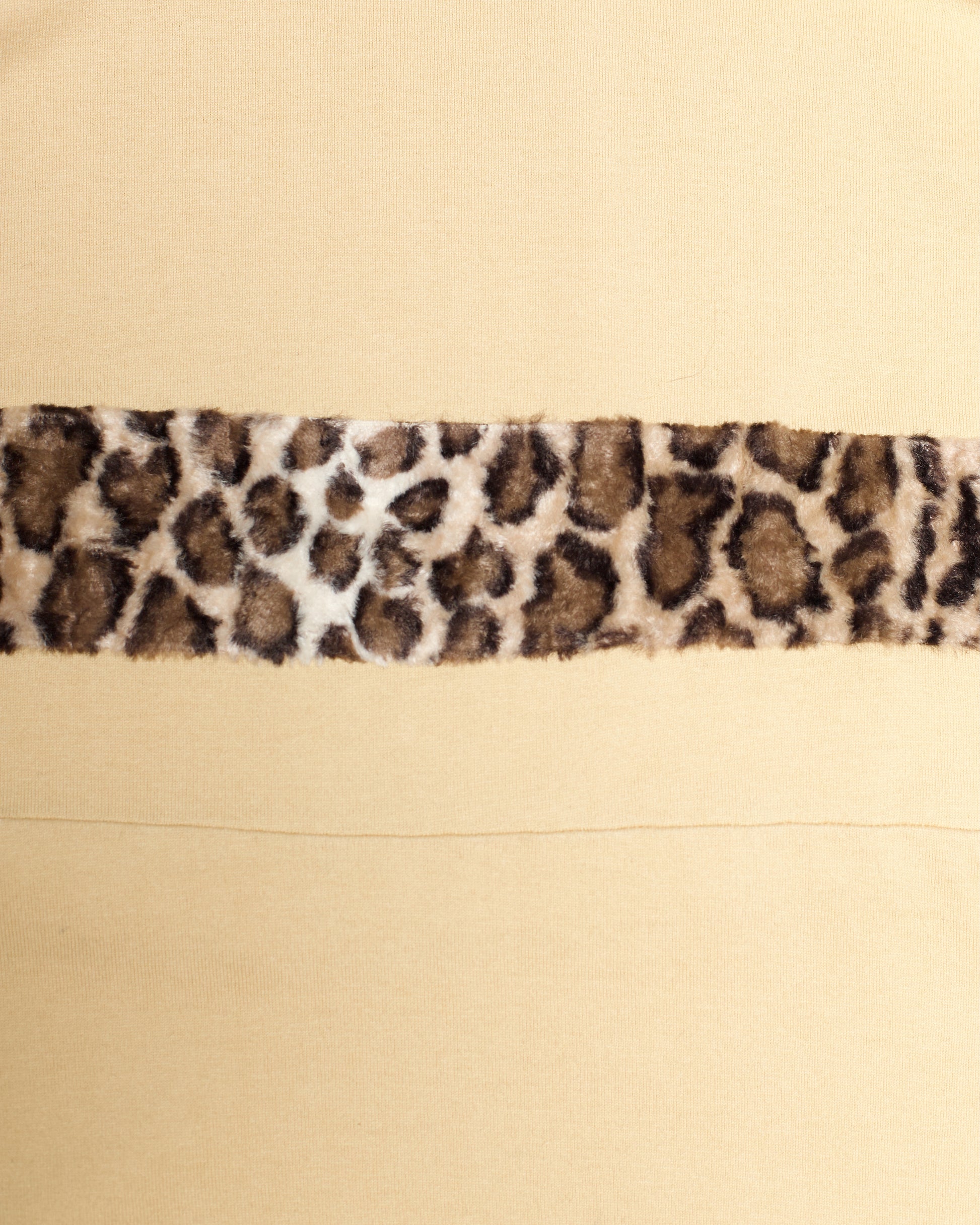 Incredibly rare, early piece from Undercover's second ever full collection, Spring-Summer 1995. The top, constructed from a vanilla hued, soft cotton, is elongated and length and most prominently features a strip of leopard print running across the chest. A second seam runs below, creating a paneled effect to the top.