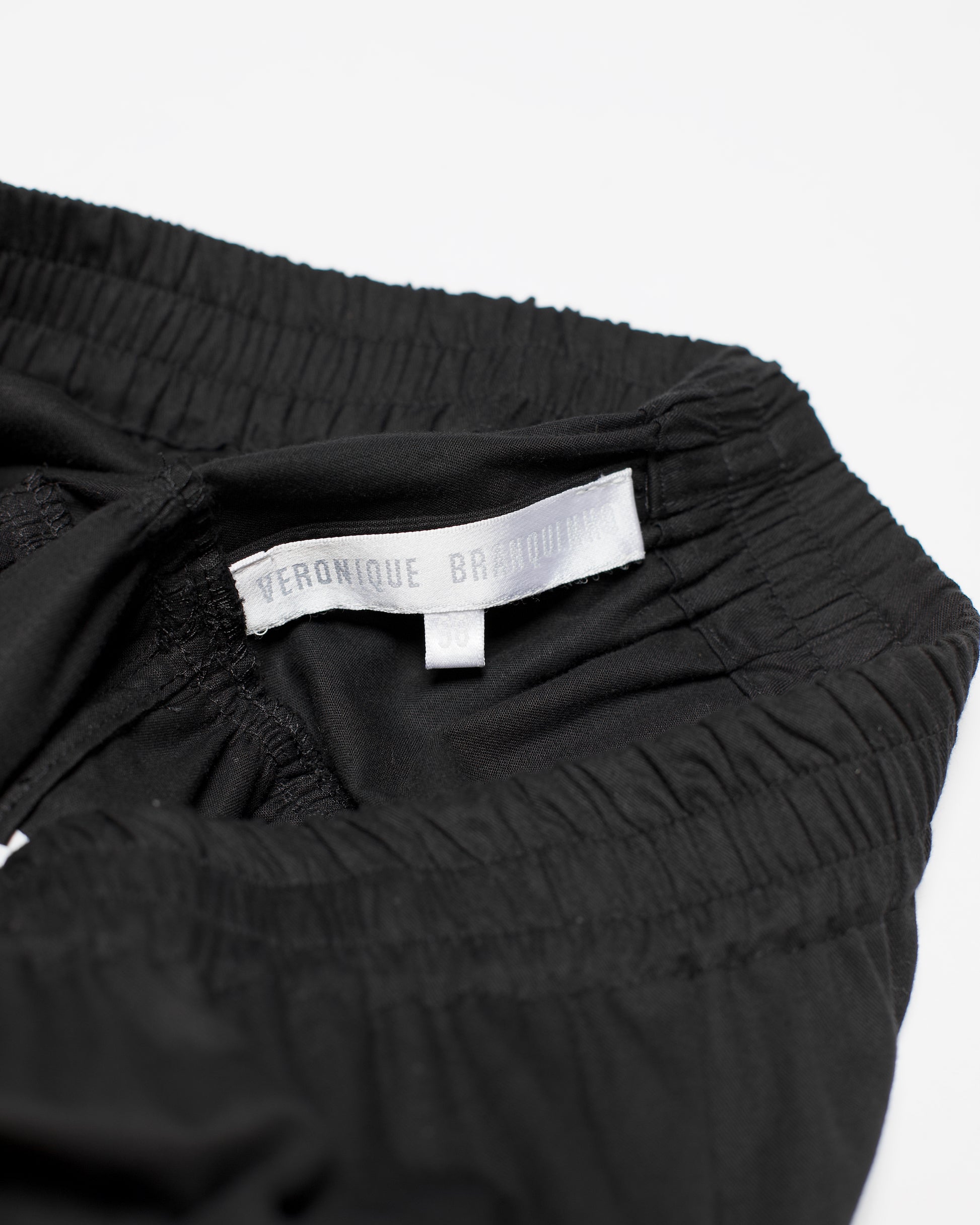 Black utility skirt from Veronique Branquinho's Spring-Summer 2000 collection. Produced within the first few years of the prolific Belgian designer's career, the skirt features layered fabric with the collection's signature pocket structure attached overtop, secured by o-rings.