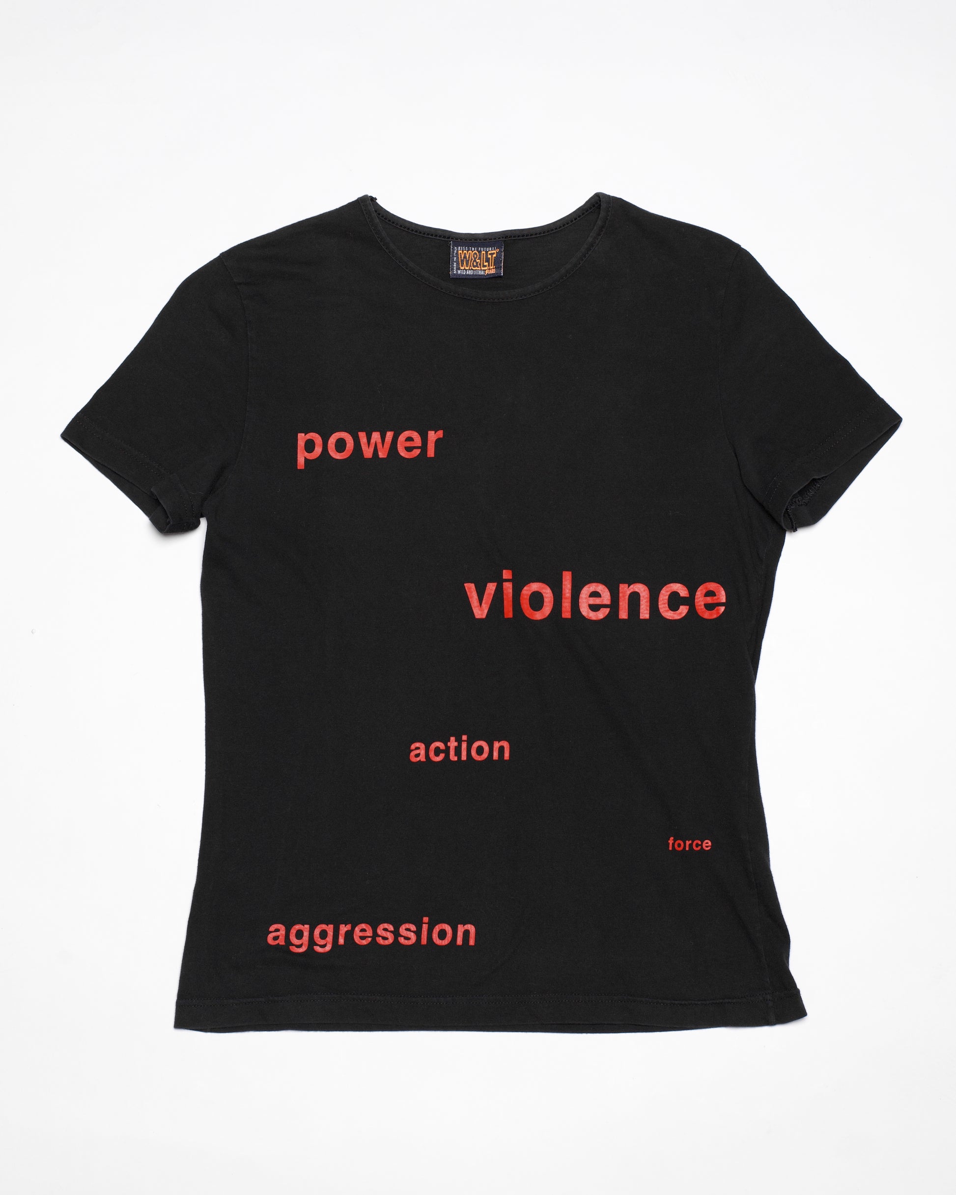 Graphic 'Aggressive' shirt from W<, Walter Van Bierendoncks' wacky, experimental 90s fashion line.