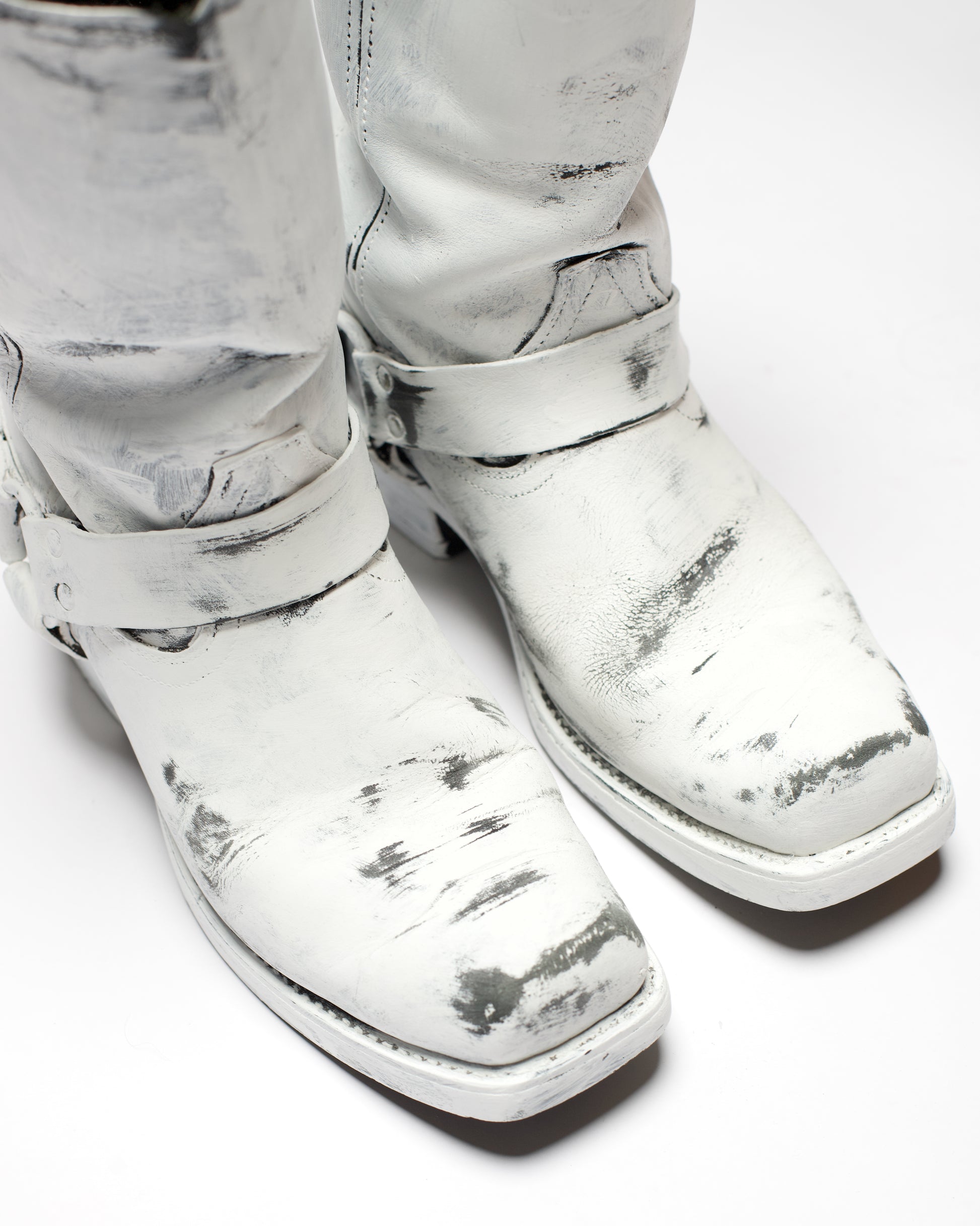 复古 Frye 工程师靴,涂成 Margiela 风格的白色,并做旧处理。